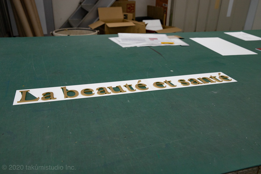 今回ご紹介する、シート貼りでのゴールド切り文字はこちらです👇
