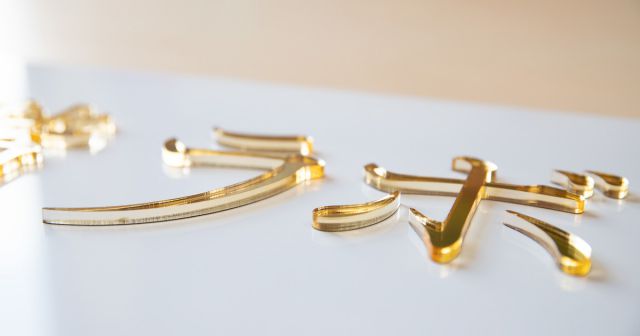 ということで、アクリル切文字(ジュエルサイン)のミラーゴールドのご紹介でした。もし、同仕様でのお見積りをご希望の場合、ご要望欄に「ミラーゴールド加工を希望」と記載していただければOKです😉